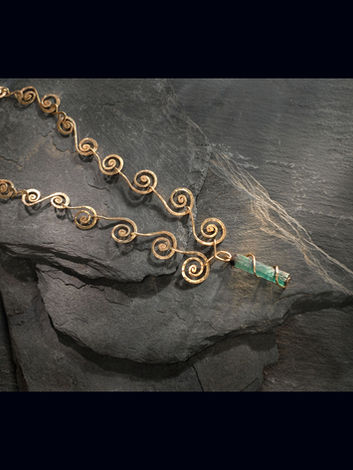 Missing Link Jewelry is a handcrafted jewelry brand by Charles L. Ramseyer that creates custom gold and sterling silver spiral pieces with natural gemstones. Its style blends ancient-inspired techniques with modern body adornment, emphasizing one-of-a-kind, meaningful designs.